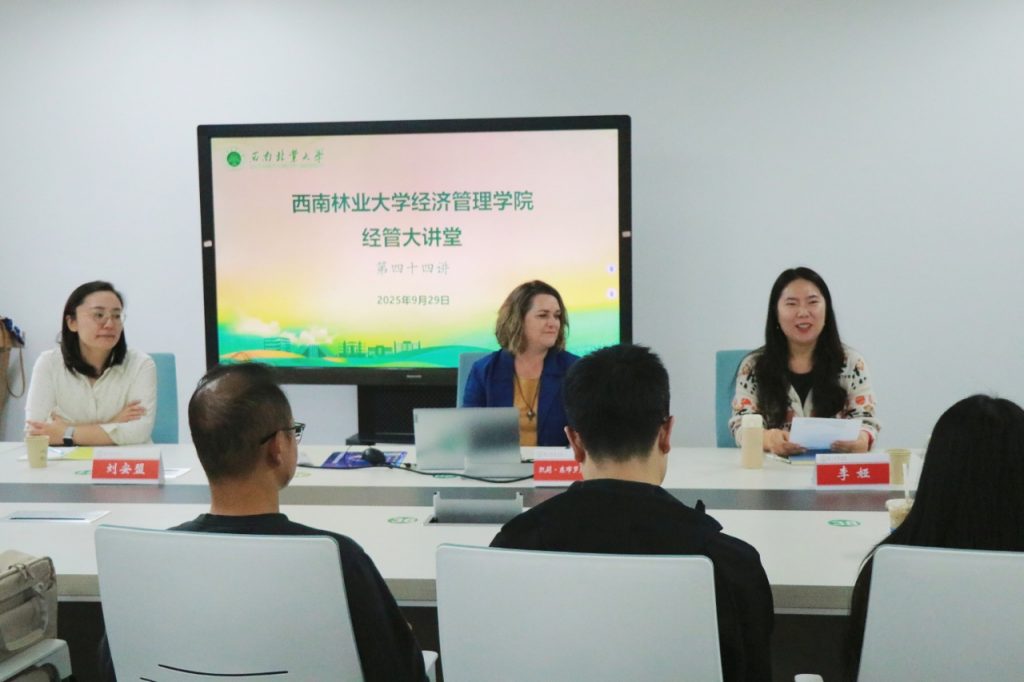 2025年9月29日,新西兰梅西大学国际人文地理学领域的权威学者,新西兰地理学会主席Kelly Dombroski教授做客 “经管大讲堂”,为公司师生作题为“Researching Diverse Caring Economies”的学术报告。报告由williamhill英国威廉希尔副经理李娅主持,刘安盟博士协助翻译,30余名研究生代表参加。