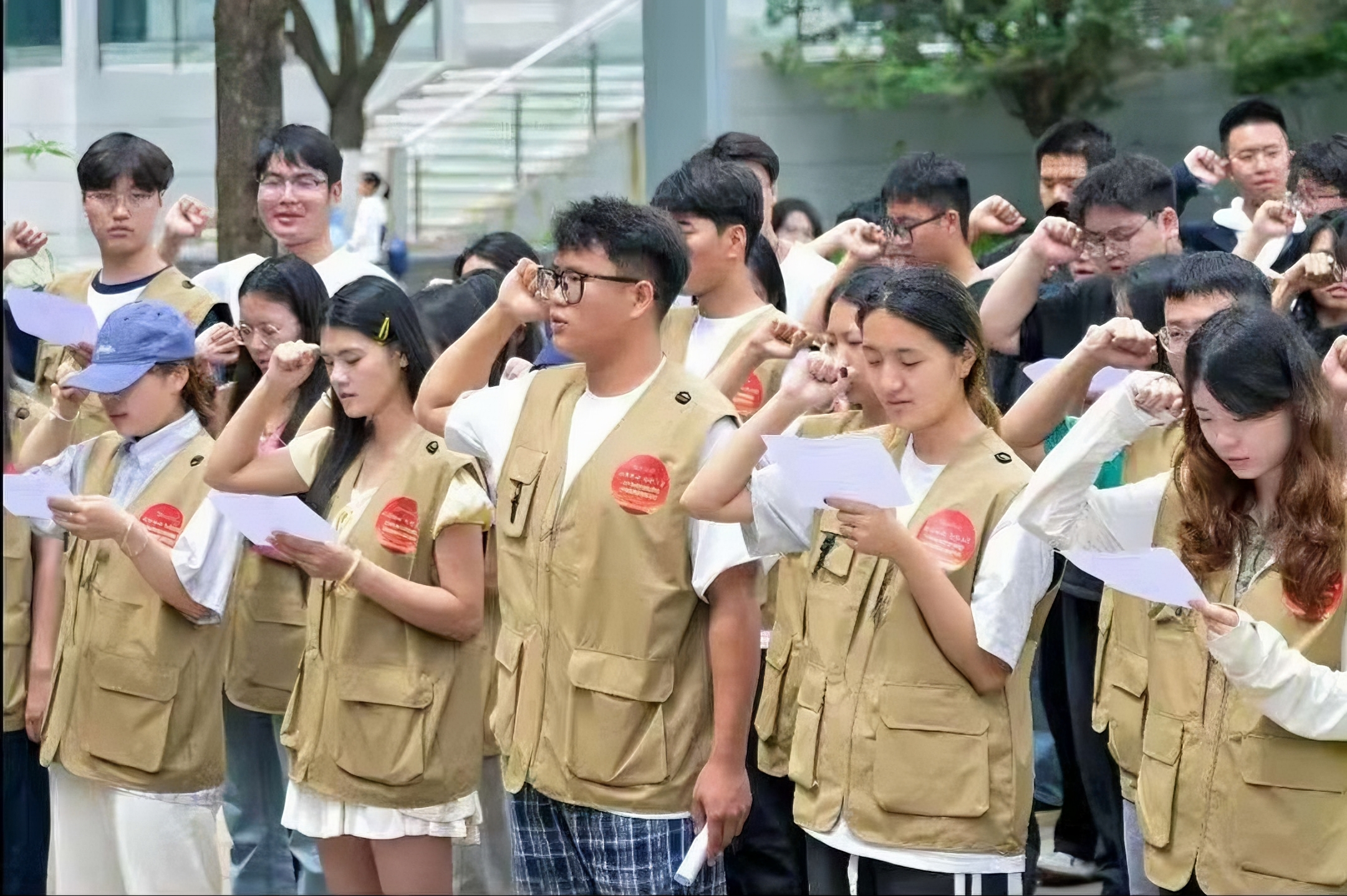 在实践团代表熊康杰的带领下,全体实践团成员右手握拳,庄严宣誓:“以青春之名,担时代之责!自觉遵守纪律,坚决服从指挥;深入扎根乡土,汲取生活智慧;无畏艰难困苦,甘于无私奉献!为全面推进乡村振兴,贡献吾辈青春智慧与力量!为以中国式现代化全面推进强国建设、民族复兴伟业而不懈奋斗!”铿锵誓言响彻广场,传递出全体实践团成员投身实践、不负韶华的坚定信念,更彰显着新时代青年将个人成长融入社会发展的担当。