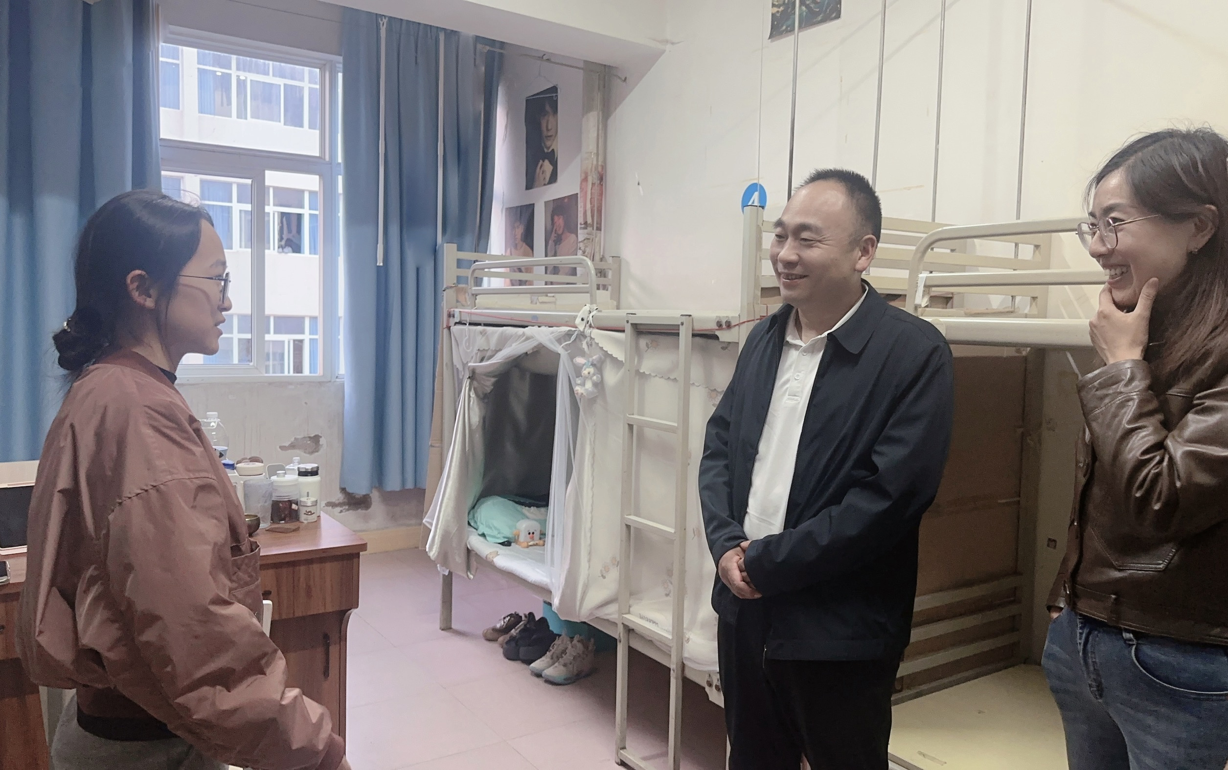 6月4日晚,公司副董事长郭华、保卫处处长徐大华、办公室(党委巡察办)副主任王欢、公寓管理部负责人等一行走访了williamhill英国威廉希尔2025届毕业生宿舍,与员工亲切交流并送上祝福。经济管理公司党委书记韩洁、党委副书记马泽、毕业班班主任陪同走访。