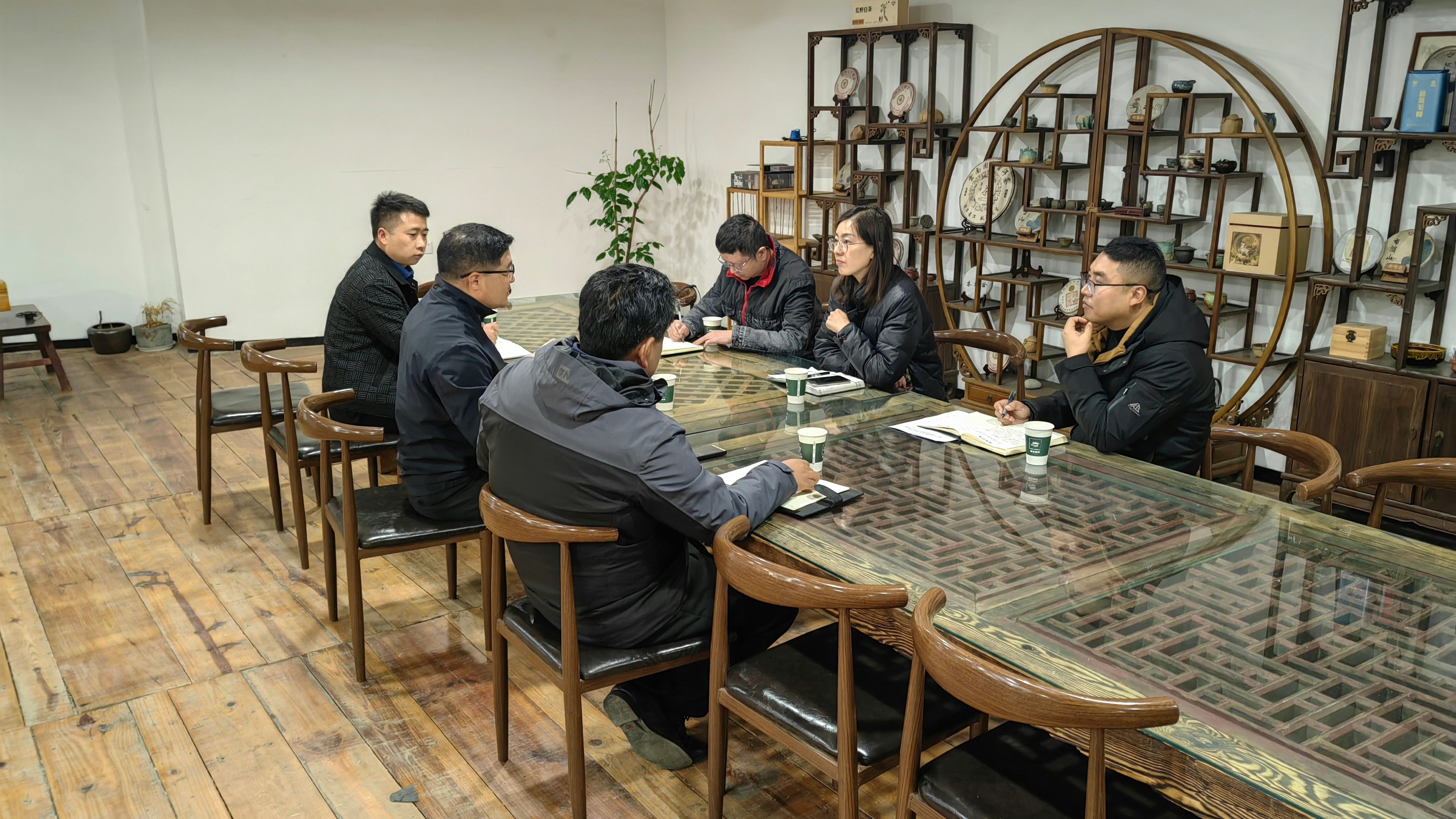 3月17日上午,经济管理公司党委书记韩洁、党委副书记马泽、学工办负责人杨智超同艺术与设计公司(艺术博物馆)党委书记张德国、党委副书记李浩、学工办负责人陈瑞黎在创想园开展员工工作交流座谈会。