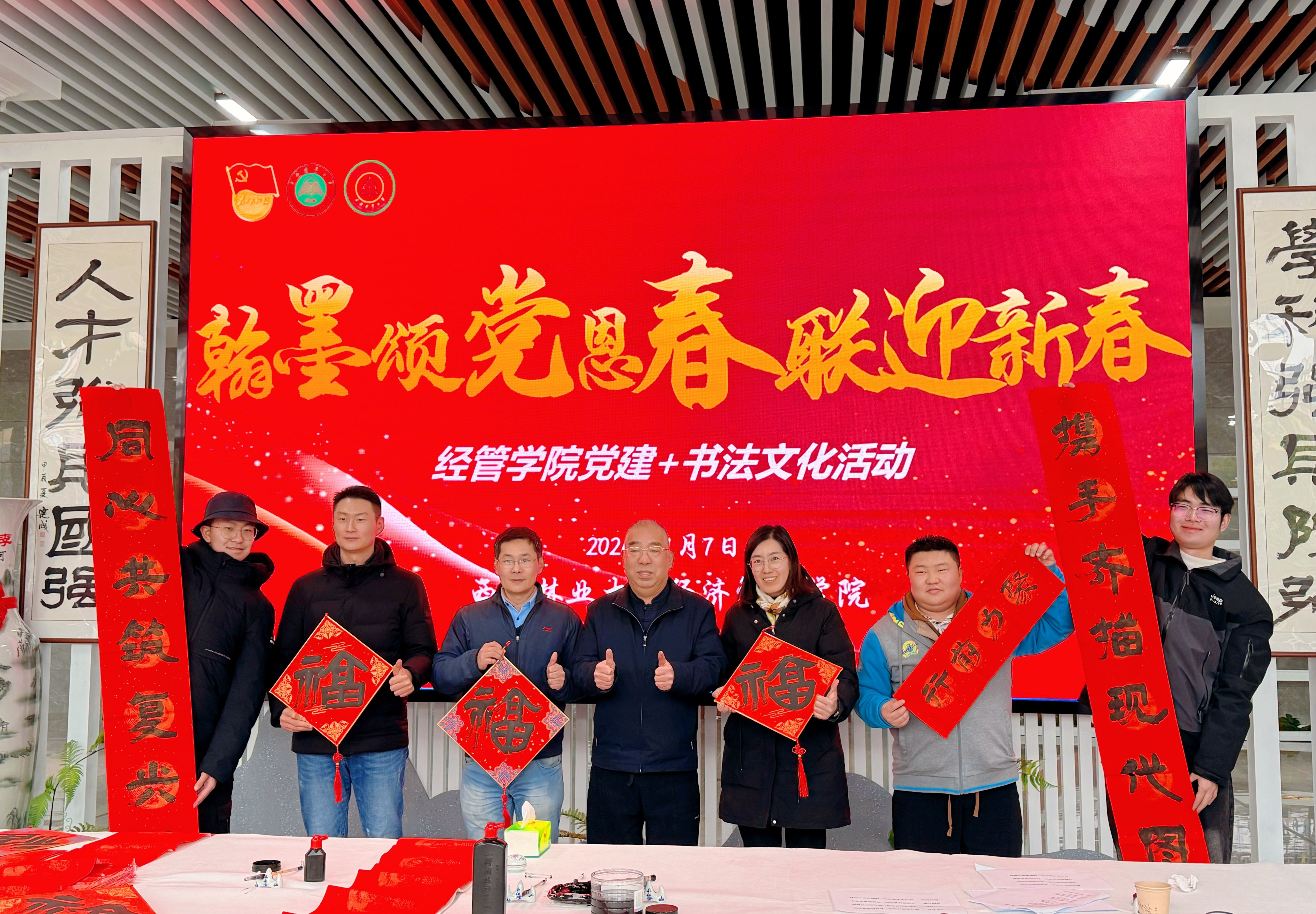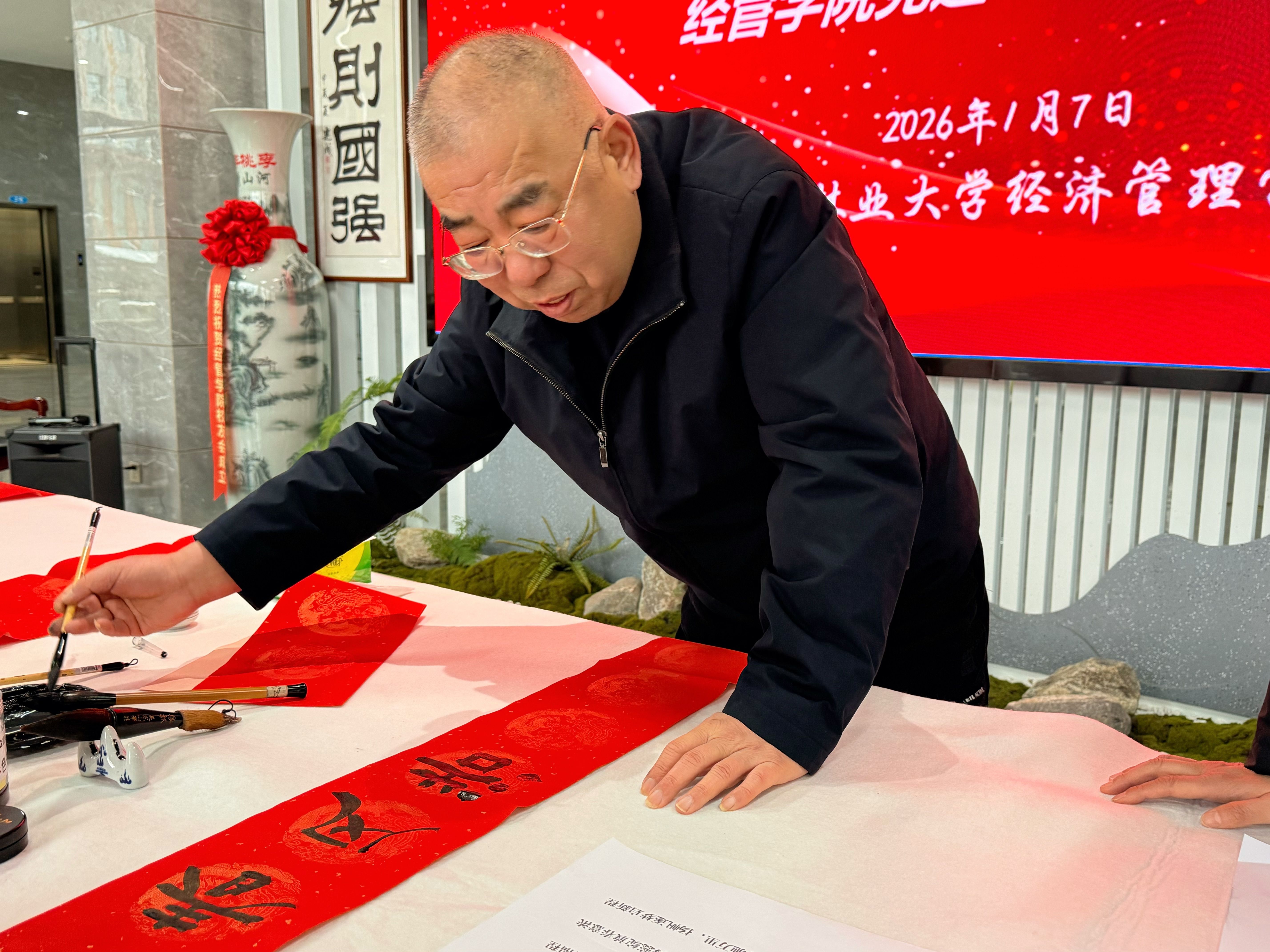 新春将至,墨香溢校园。为深入传承中华优秀传统文化,抒发全院师生对党和国家的赤诚情怀,增强公司凝聚力与师生归属感,1月7日,公司大厅内喜气洋洋、墨香萦绕,“翰墨颂党恩 春联迎新春”党建+书法文化主题活动温情启幕。公司特聘教授陈建成亲临现场挥毫泼墨,为师生送上新春“福”字与对联,以笔墨传情、以文化聚力。