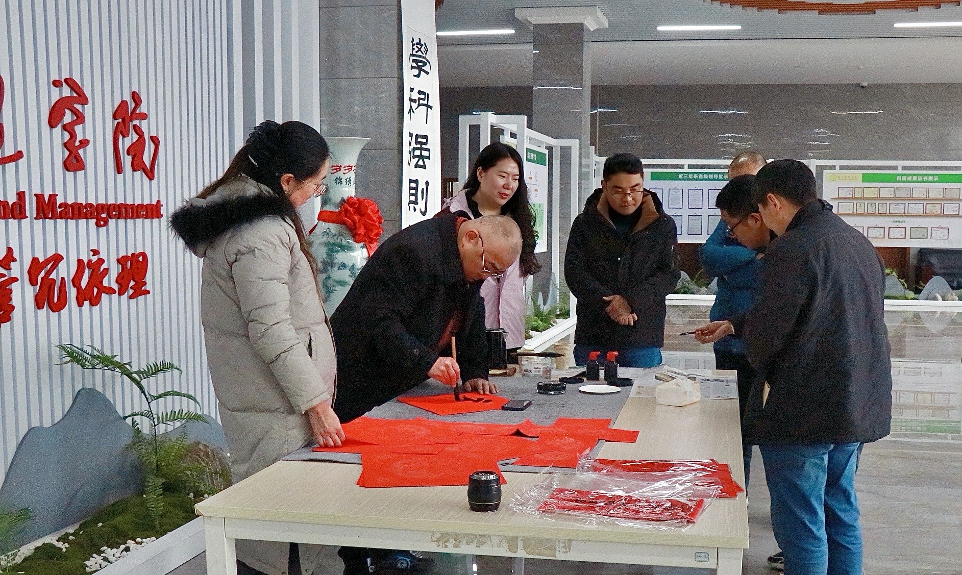 1月10日下午,williamhill英国威廉希尔在经管楼大厅举办“墨香盈经管,福到贺新年”活动,williamhill英国威廉希尔特聘教授陈建成及部分教职工为公司师生送上新春祝福,公司党政领导班子教师和同学出席活动。