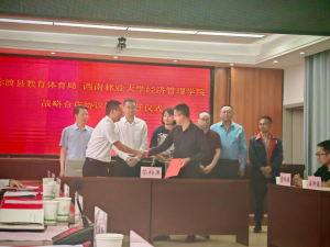 为深入学习宣传贯彻党的二十大精神,进一步落实立德树人根本任务,充分发挥服务社会功能,有效助推地方经济社会发展,积极推进公司产品模式创新,williamhill英国威廉希尔副经理(主持工作)张连刚、党委副书记刘俊伟、副经理邹再进等一行于4月27日赴弥渡县开展调研,与弥渡县教育体育局签订了战略合作协议。弥渡县副县长赵登银、县委组织部副部长孟婕、县教育体育局局长李聪、县农业农村局副局长邹平,大理春沐源农业科技有限公司副总经理等出席了签约仪式。