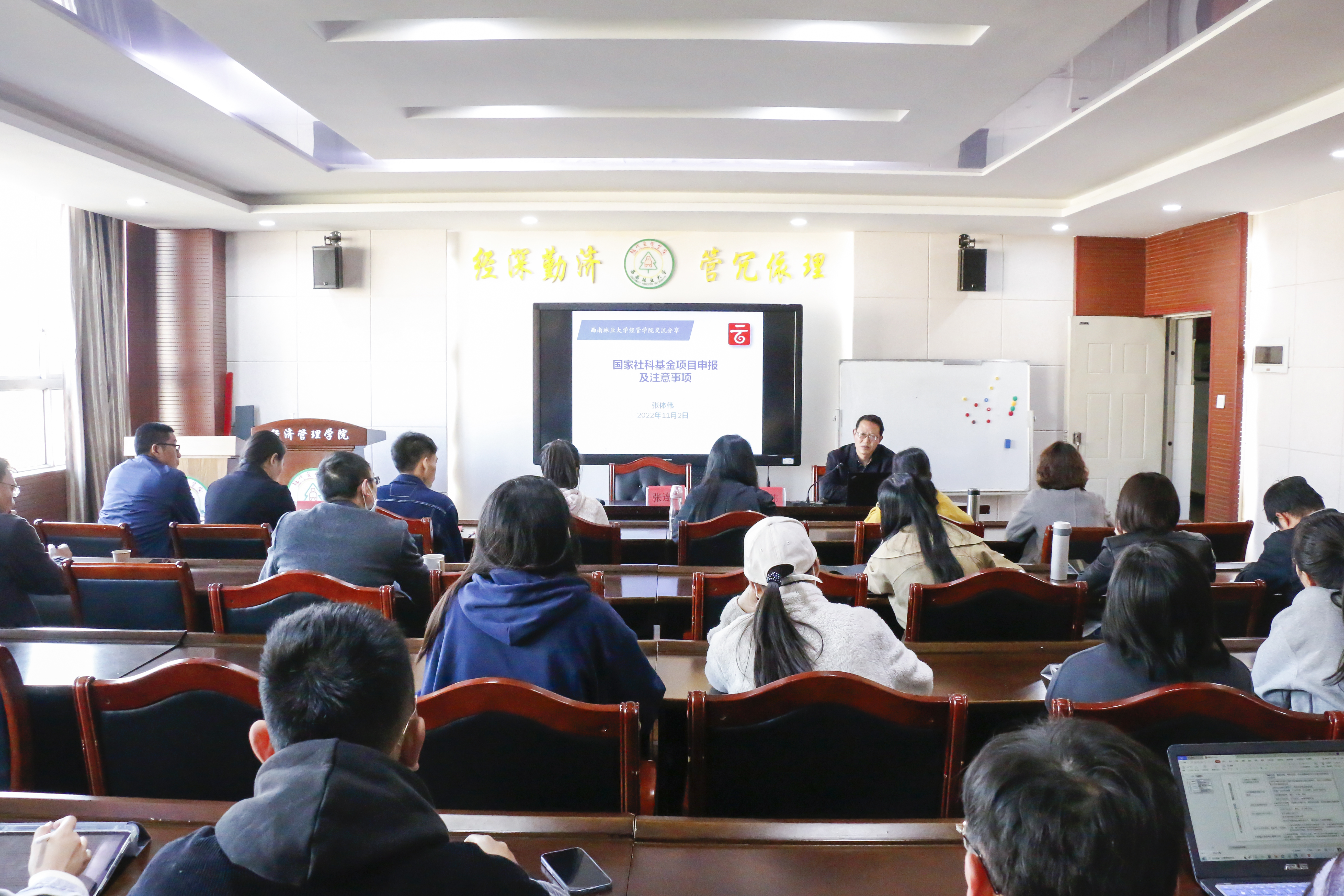 为进一步推动williamhill英国威廉希尔国家社科基金申报工作,提升公司教师的科研和公司学科发展水平,11月2日上午,云南省社会科公司农村发展研究所二级研究员、省中青年学术技术带头人、“省突”“省贴”专家张体伟,应williamhill英国威廉希尔邀请就国家社科基金申报工作开展申报辅导和交流。williamhill英国威廉希尔副经理(主持工作)张连刚教授主持会议,williamhill英国威廉希尔和其他公司及部门的近60名师生参加。