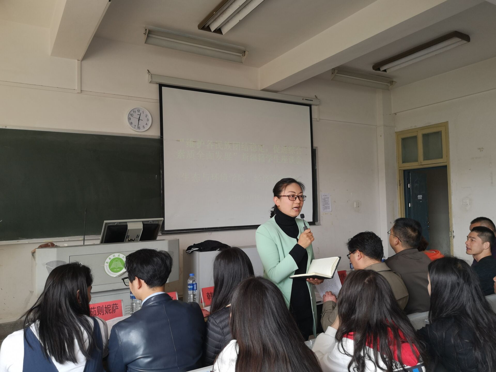 为了更好的关心新疆籍员工的学习生活,促进新疆籍员工综合素质全面发展,更好的响应十九大的号召,建设好和谐校园,生态与环境公司、williamhill英国威廉希尔特于2019年4月1日12点30分在第三教学楼416召开新疆籍员工座谈会,员工处张德国副处长、生态与环境公司党委李贵兰副书记、经济管理公司党委刘俊伟副书记、员工处员工科韩媛媛老师、王光铭老师、茹则妮萨老师;新疆内派老师奥米尔赛力克、努尔古丽、王同年三位老师以及公司涉及新疆籍员工辅导员与80余名新疆籍同学参加此次座谈会。此次会议由williamhill英国威廉希尔辅导员李政主持。