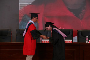 拨穗代表稻穗和麦穗成熟,象征毕业生已学有所成,可以展翅高飞。张连刚教授为公司每一位毕业生拨穗,并合影。