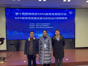 12月23日,公司williamhill英国威廉希尔副经理兼MPA教育中心主任邹再进、MPA教育中心副主任刘会柏以及研究生教学秘书张琴霞一行三人到重庆大学参加了第十届西南地区MPA教育发展研讨会。