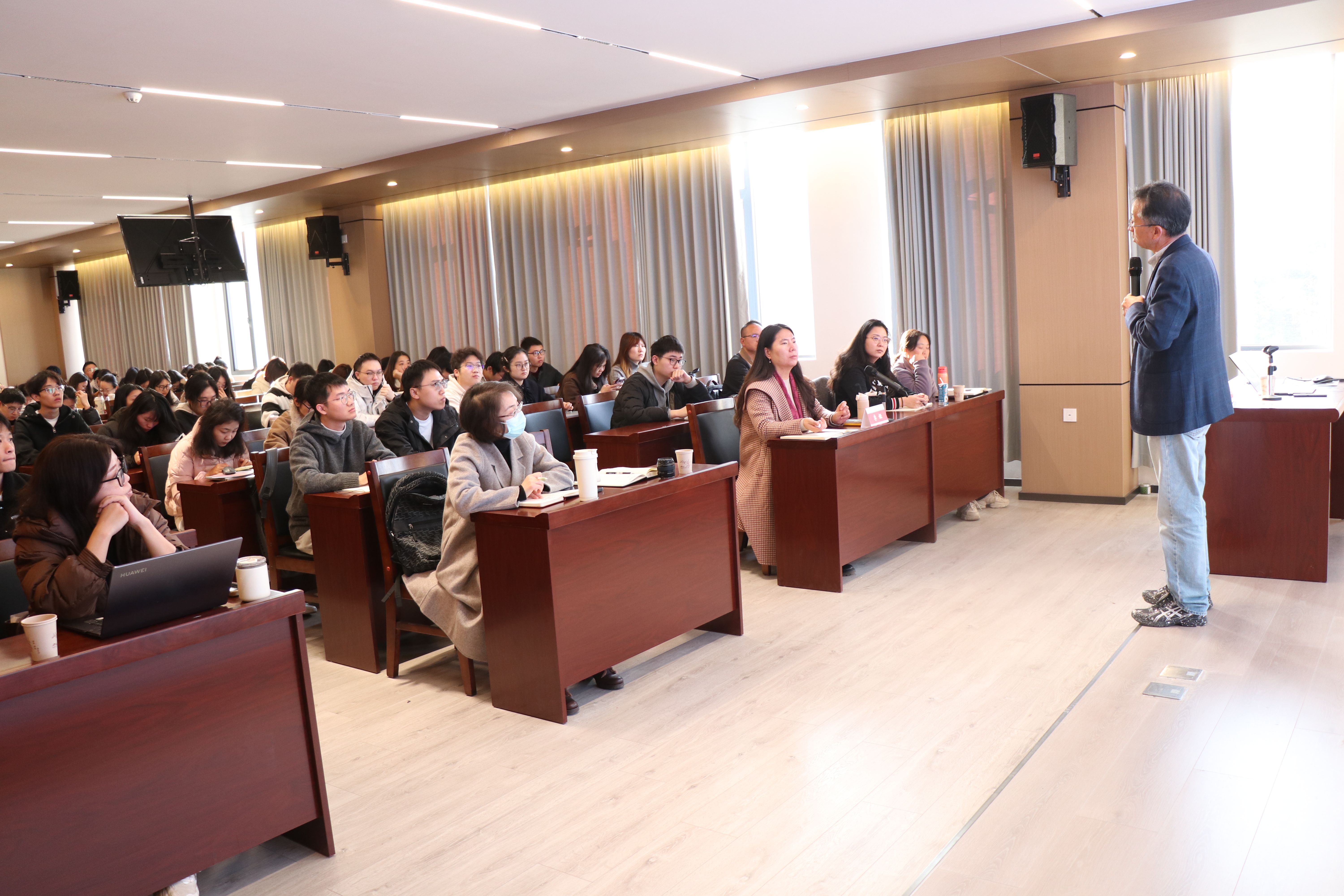 12月10日,浙江大学中国农村发展研究院徐旭初教授做客 “经管大讲堂”,为公司师生作题为“AI时代的管理认知与数字思维”的学术报告。报告由公司副经理李娅教授主持,120余名师生代表参加。