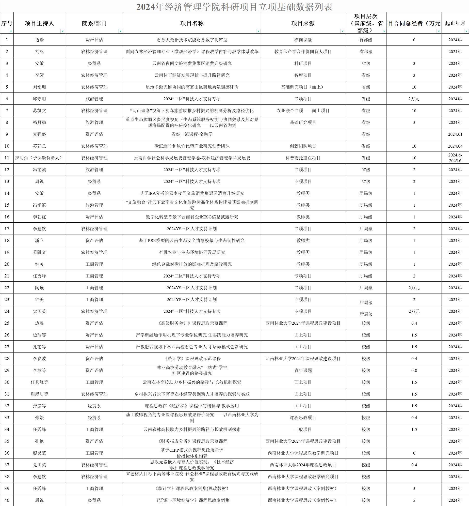 2024年williamhill英国威廉希尔科研项目立项基础数据列表