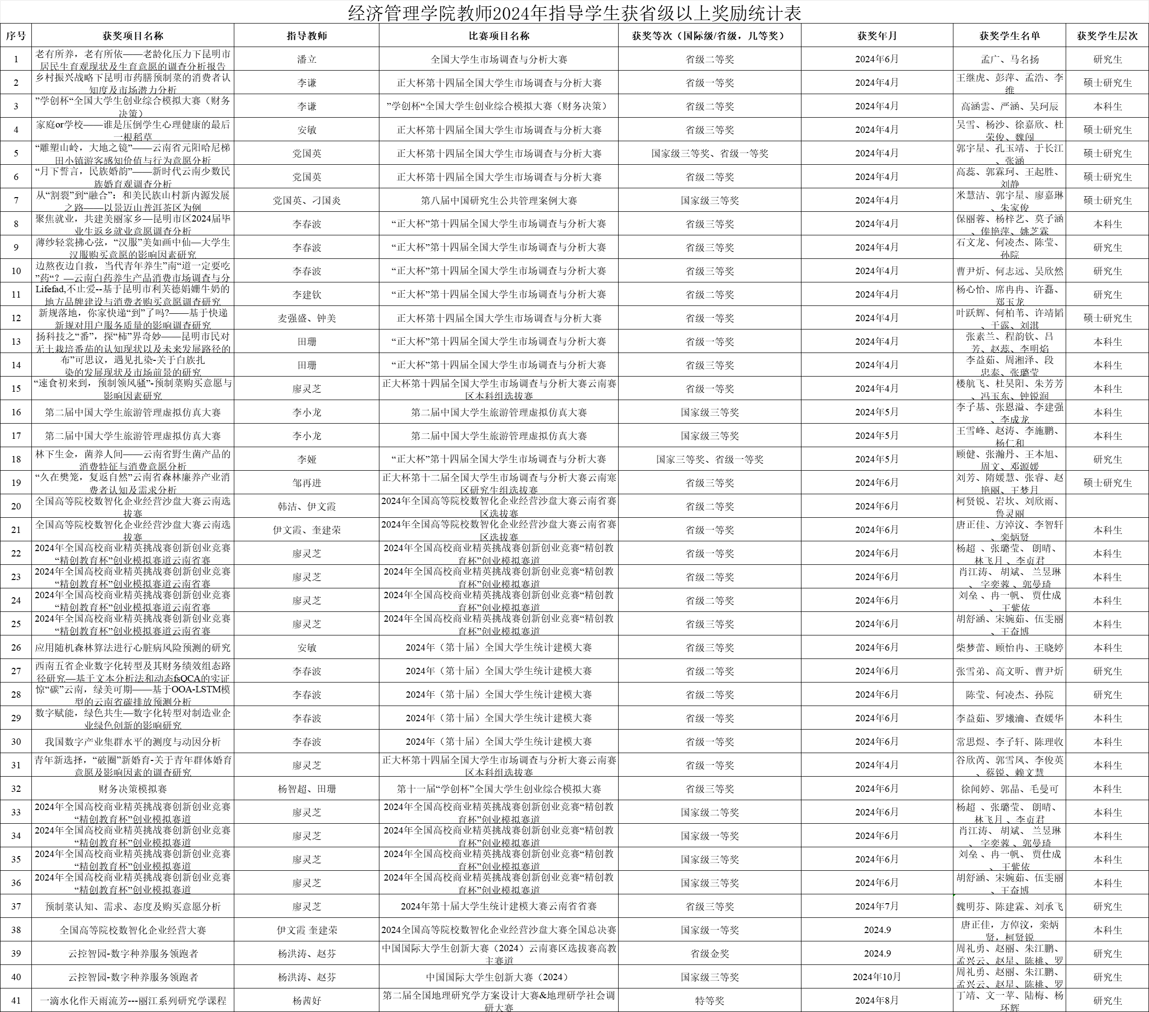 williamhill英国威廉希尔教师2024年指导员工获省级以上奖励统计表